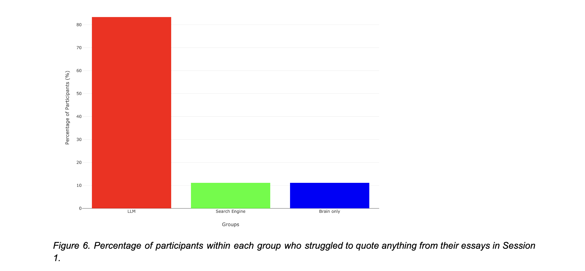 Lors de la première session, 83 % des utilisateurs de LLM se sont révélés incapables de fournir une seule citation de leur essai.