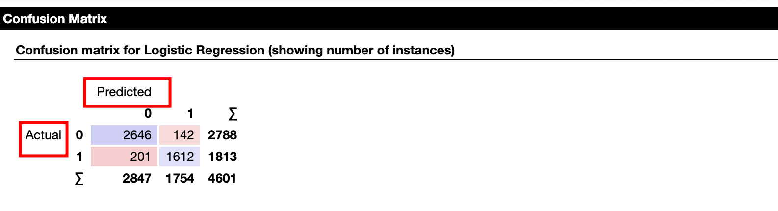 On retrouve 1813 spams (TP+FN) et 2788 non-spams (TN+FP), soit 1813/4601 = 39,4 % de spams et 2788/4601 = 60,6 % de non-spams.