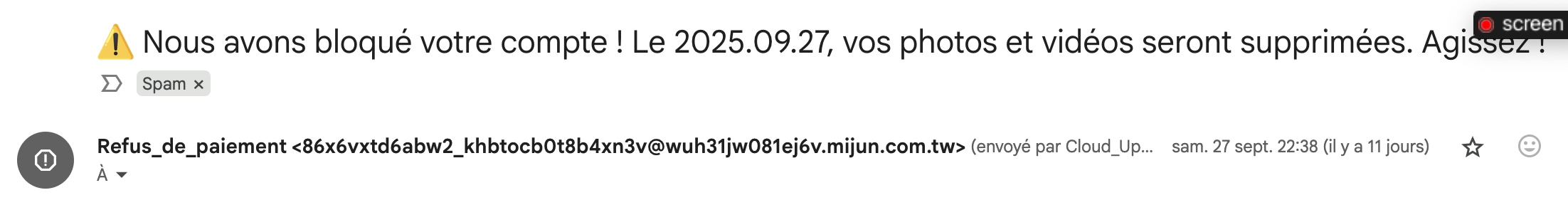 Entête d’un spam, le dataset n’intègre pas l’analyse de l’email