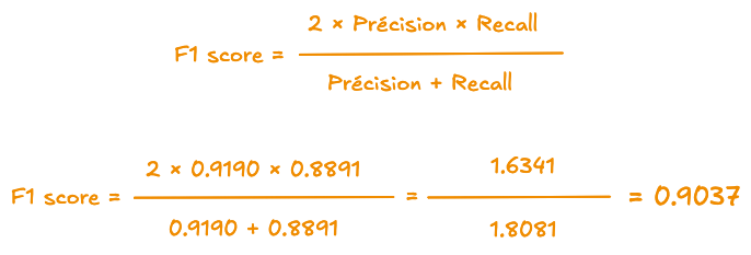 F1 : moyenne harmonique de la précision et du rappel ; élevé seulement si les deux sont bonnes.