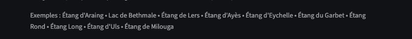 # Mots très génériques (pour ignorer les tokens sans valeur sémantique et départager les ex-aequo) GENERIC = {"lac","lacs","etang","étang","etangs","étangs","de","du","des","la","le","les","l","d","sur","aux","au"}