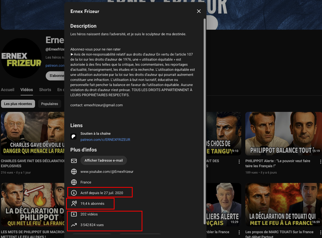 Les éléments laissent penser que la chaîne est “artificiellement” alimentée par l’achat de vues ; mais, là encore, ce n’est pas mon propos et je ne peux pas le vérifier.